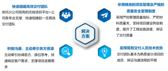 (1) 依托分公司現(xiàn)有的無線項(xiàng)目平臺+公司各產(chǎn)品專家,快速組建起一支高效交付團(tuán)隊(duì)
