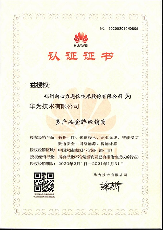 向心力公司成功獲得華為公司“多產(chǎn)品線金牌經(jīng)銷商”代理資質(zhì)
