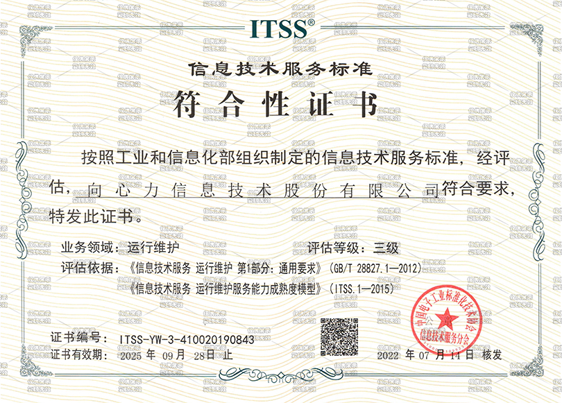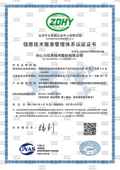 信息技術(shù)服務(wù)管理體系認(rèn)證證書(shū)