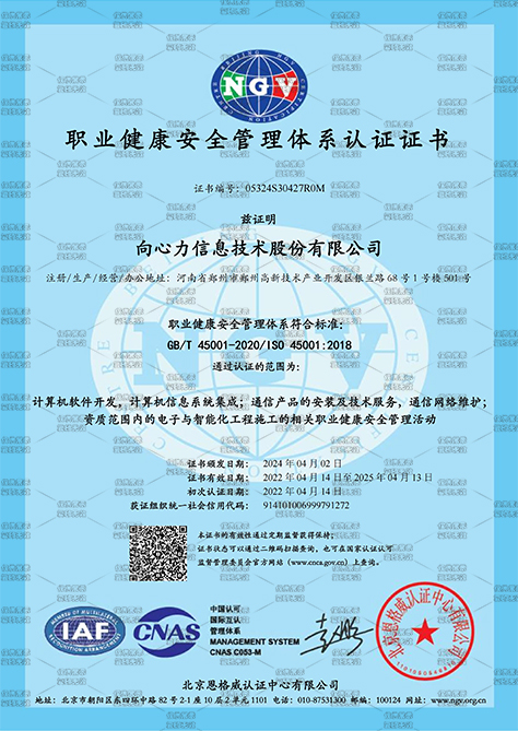 職業(yè)健康安全管理體系認(rèn)證證書(shū)