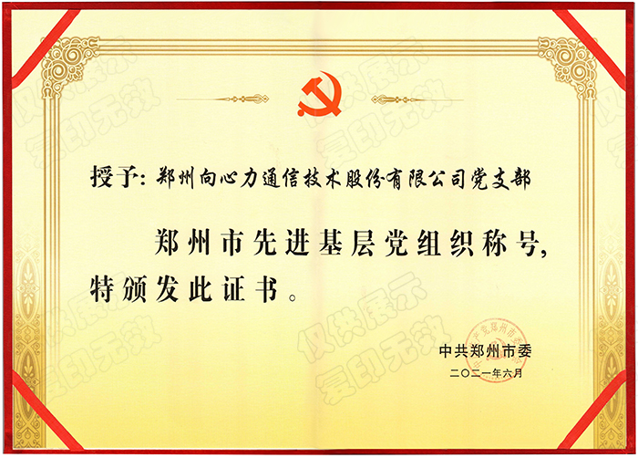 2021年鄭州市先進基層黨組織證書
