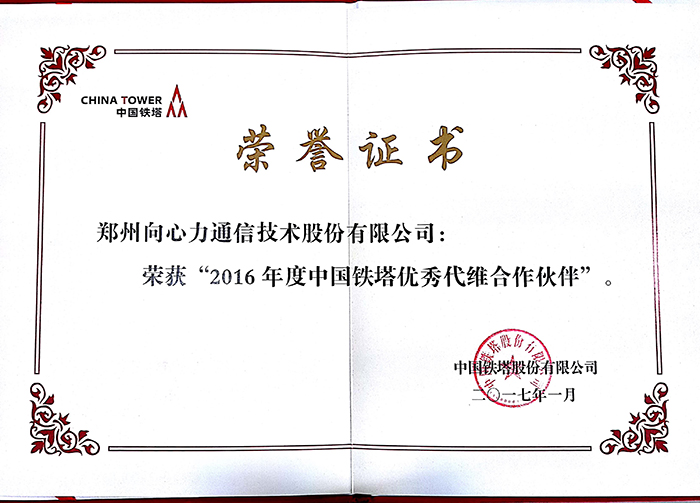 2016年度中國鐵塔優(yōu)秀代維合作伙伴