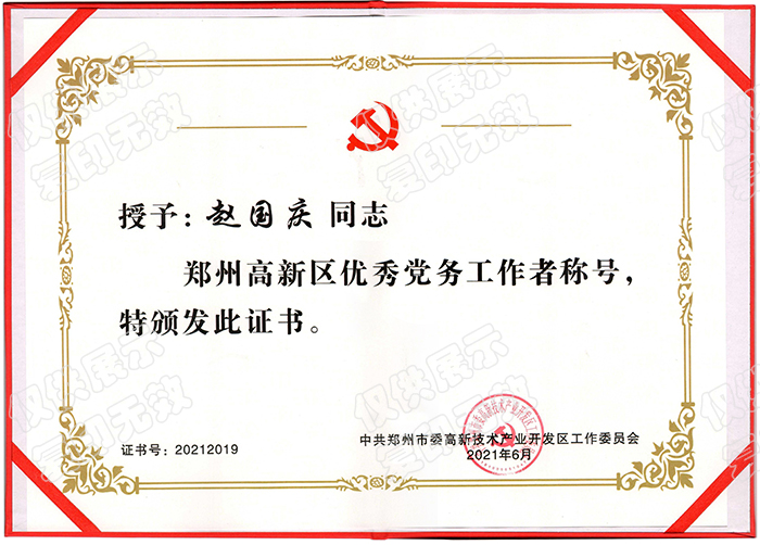 2021年優(yōu)秀黨務(wù)工作者證書